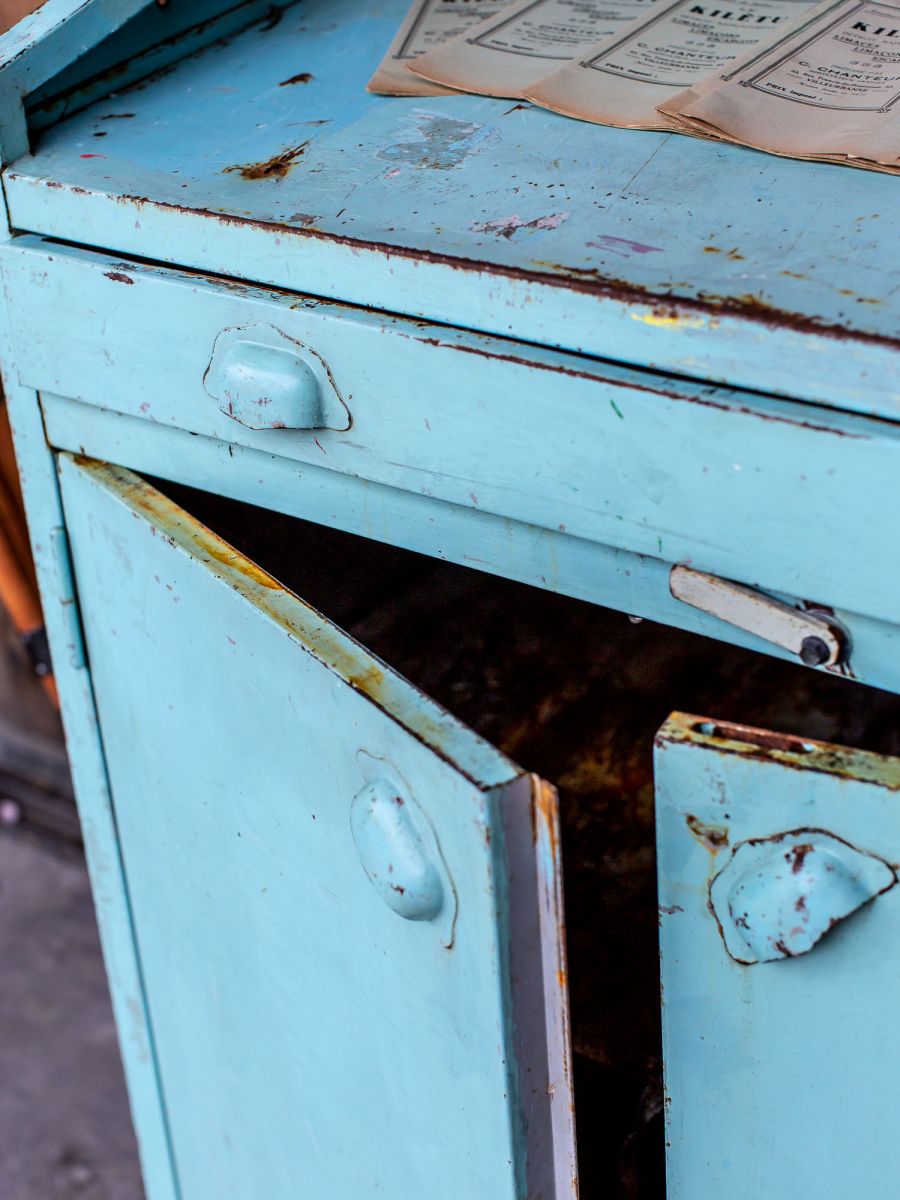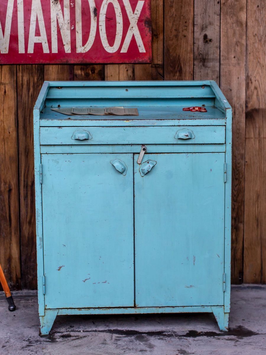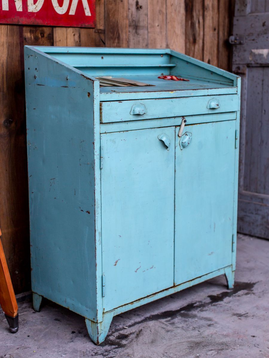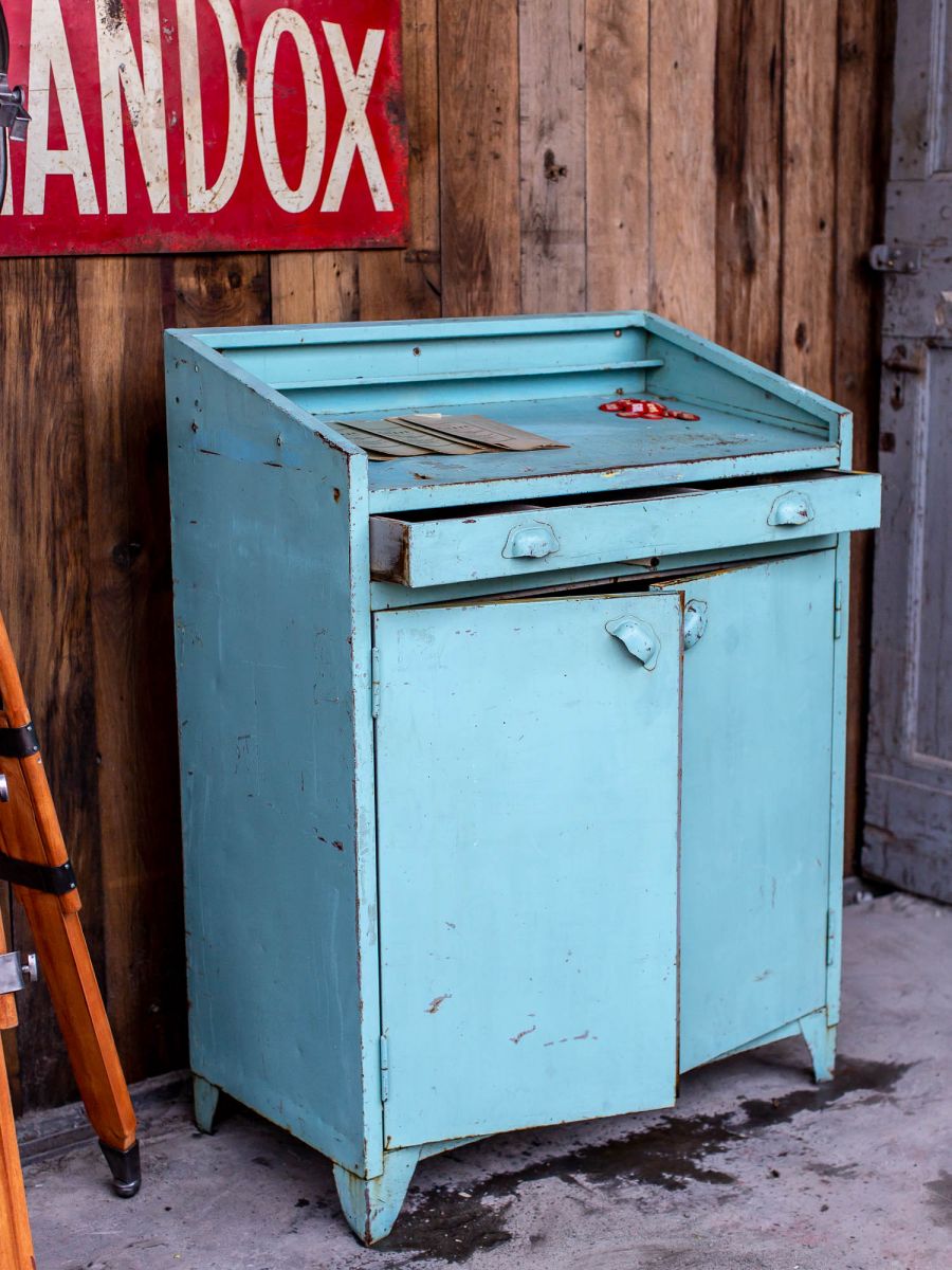 meuble de métier industriel en métal Grand tiroir haut rangement bas placard 2 portes