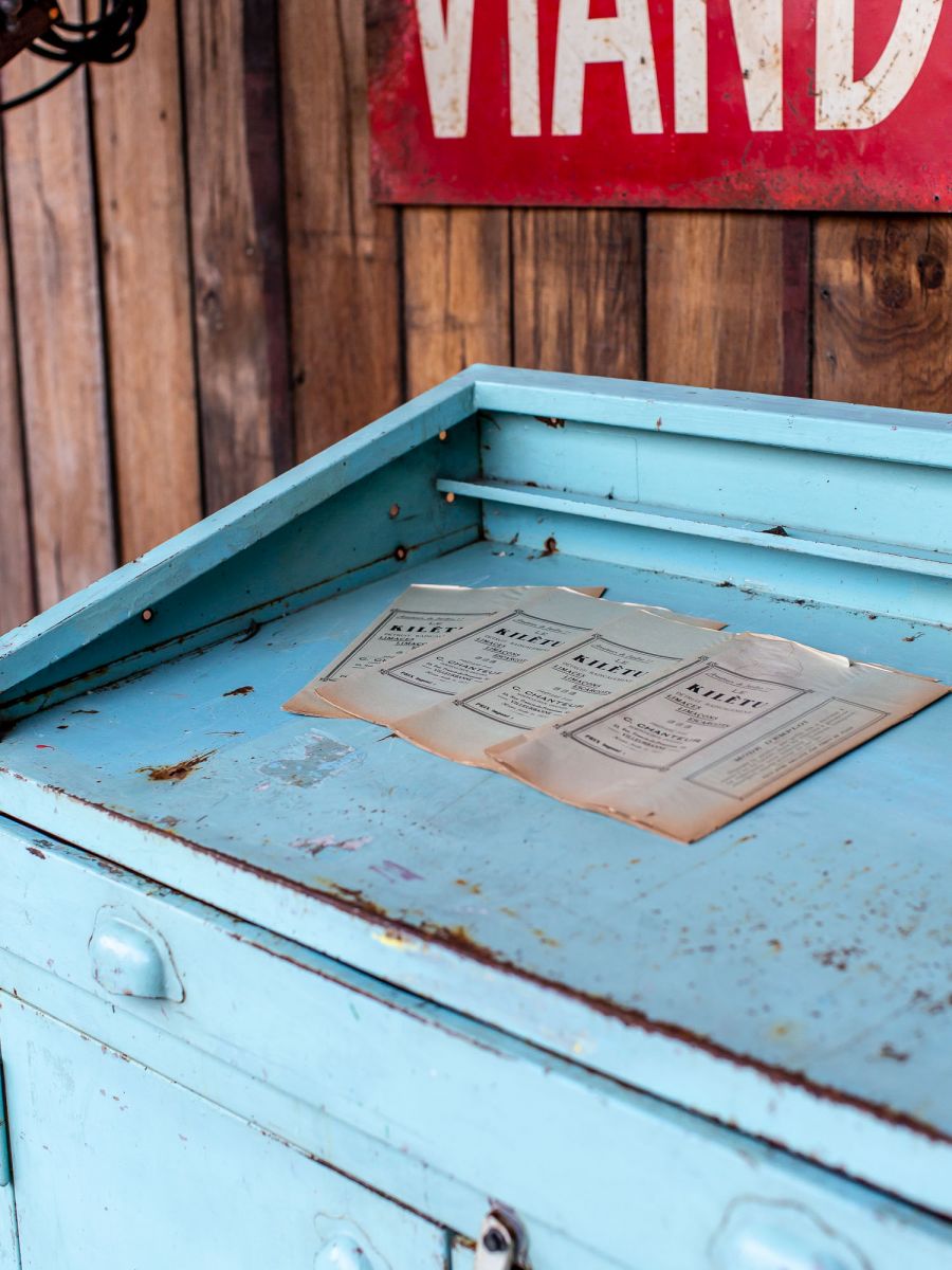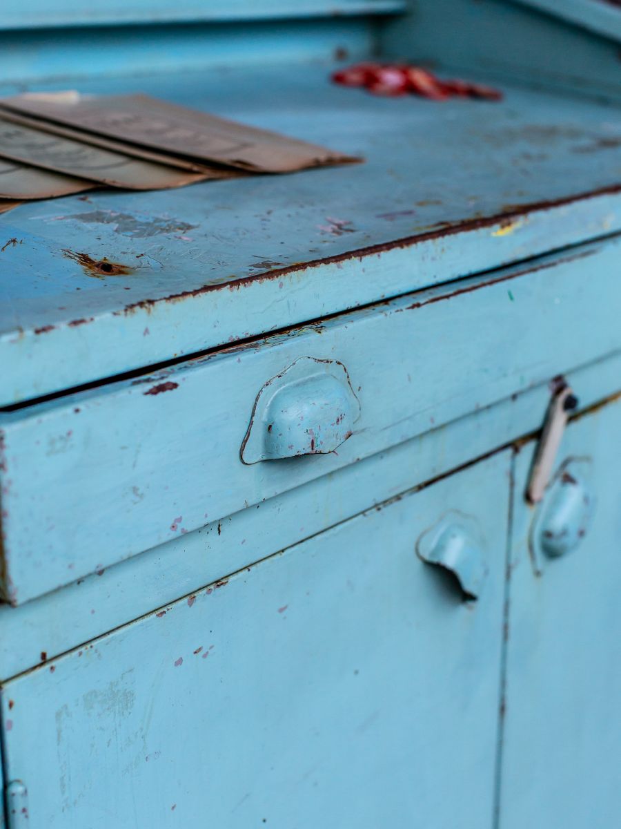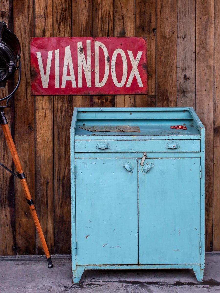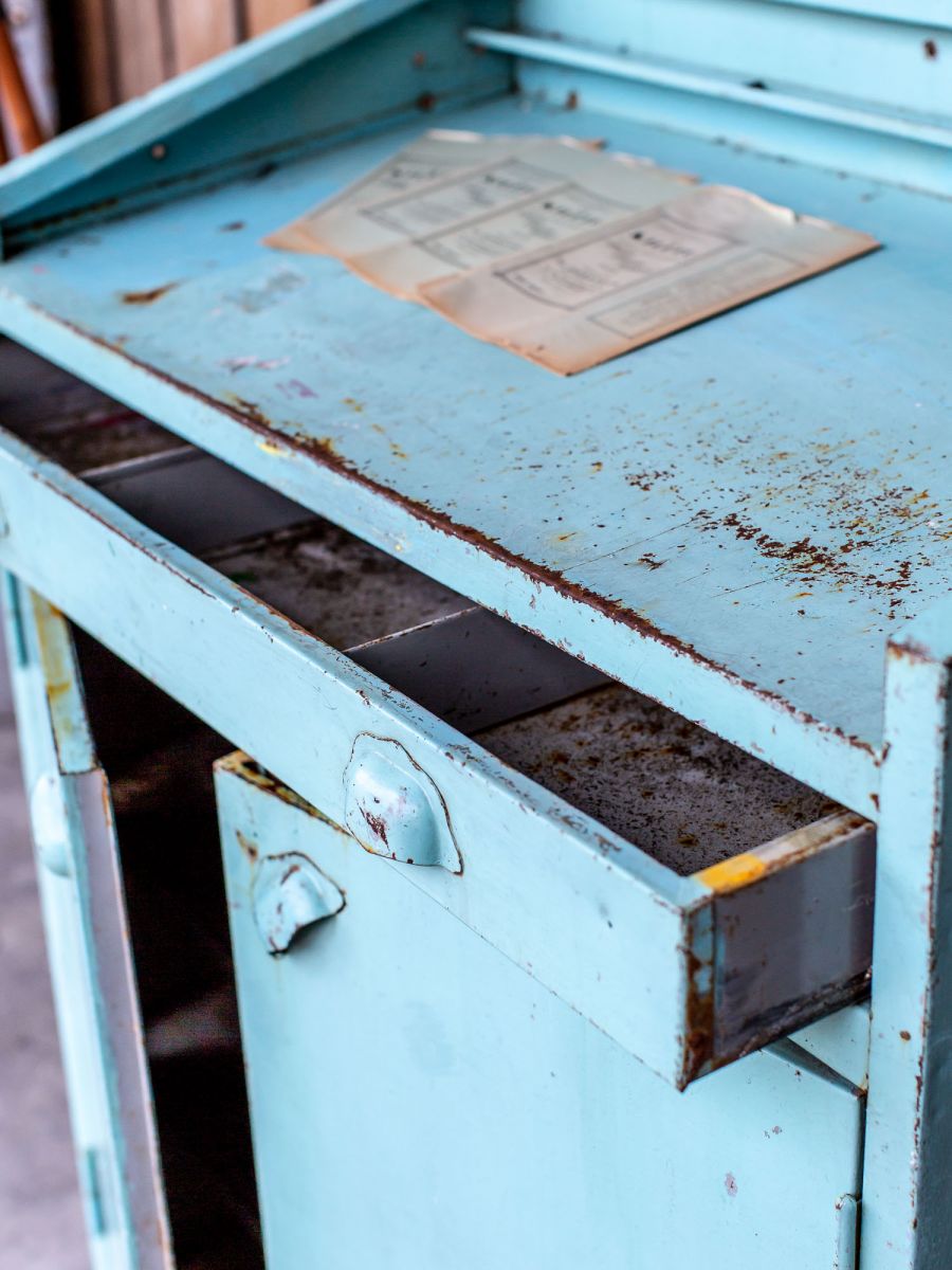 meuble de métier industriel en métal Grand tiroir haut rangement bas placard 2 portes