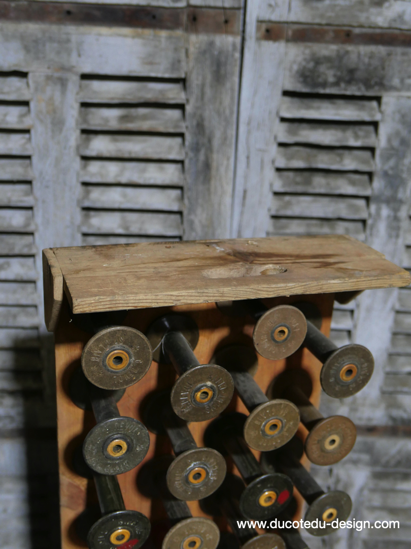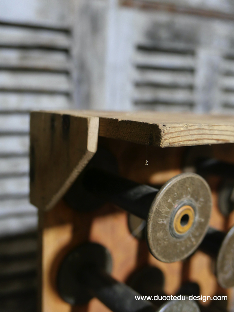 Casier porte bobine en bois et metal dim 65 / 15 / 36 cm