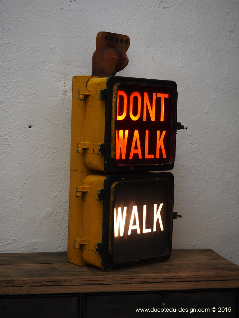 feu don't walk americain vintage USA jaune d'origine