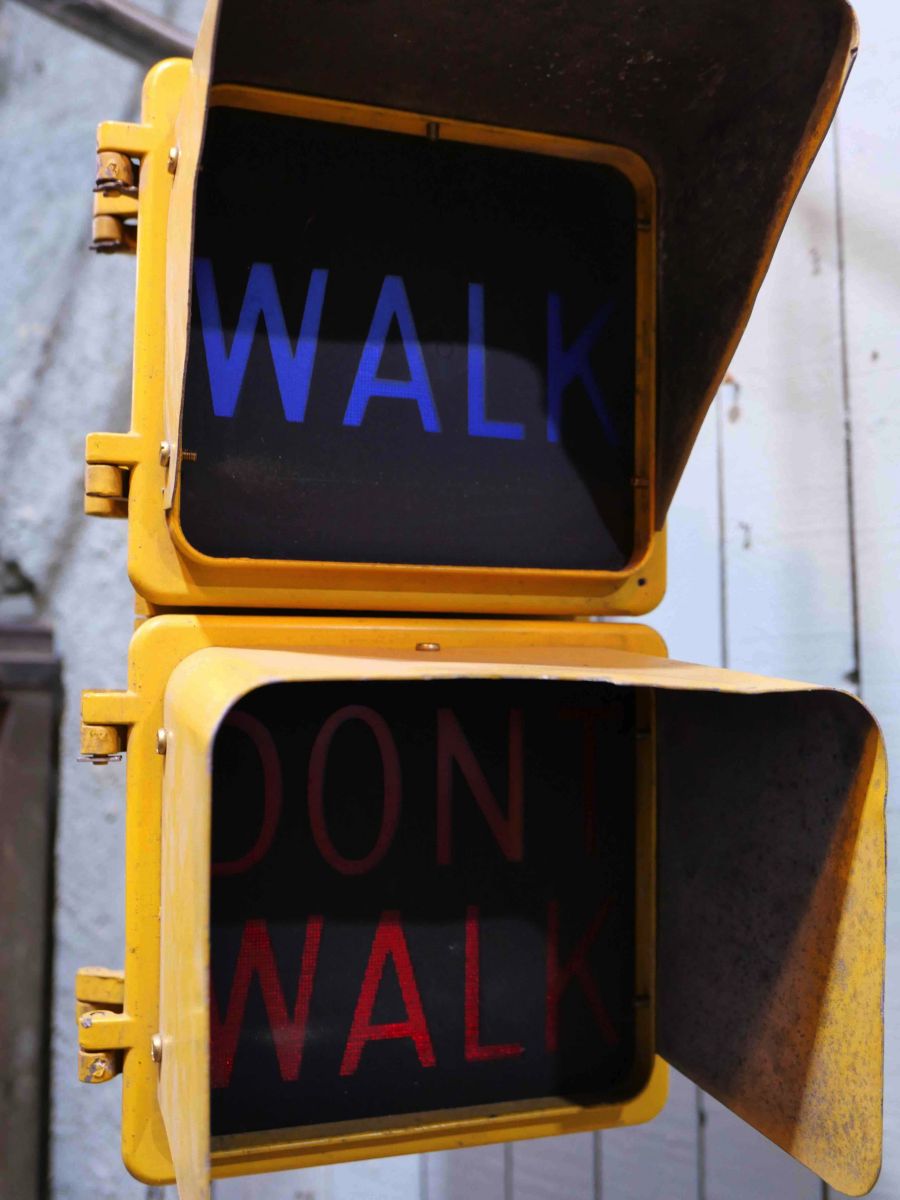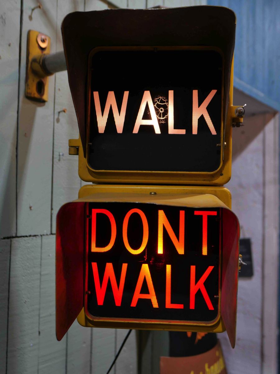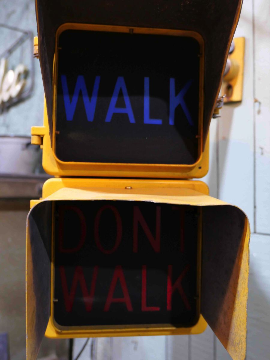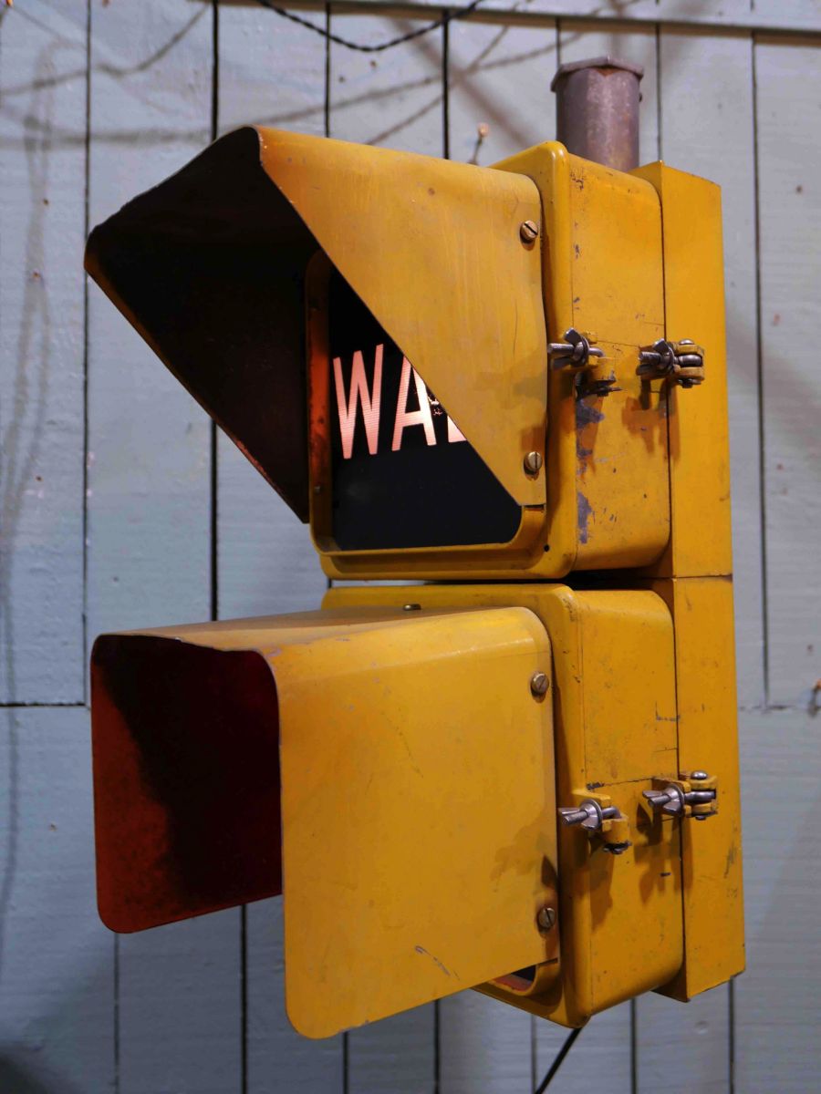 ◊ feu dont walk americain vintage USA jaune d'origine dans son jus eletricite en 220 v / ampoules 60 w de la ville de New York magnifique objet de déco peinture jaune d'origine fixations murale / casquettes Dimensions : H: 70 / L: 50 / P: 40 cm