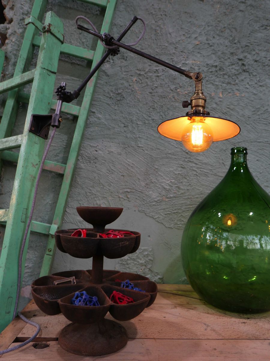Lampe OC White Worcester Mass USA lampe a fixer, 2 bras articulés diametre du globe 20 cm tres beau modele de lampe industrielle piece rare et magnifique des années 20 electricité entierement revisée
