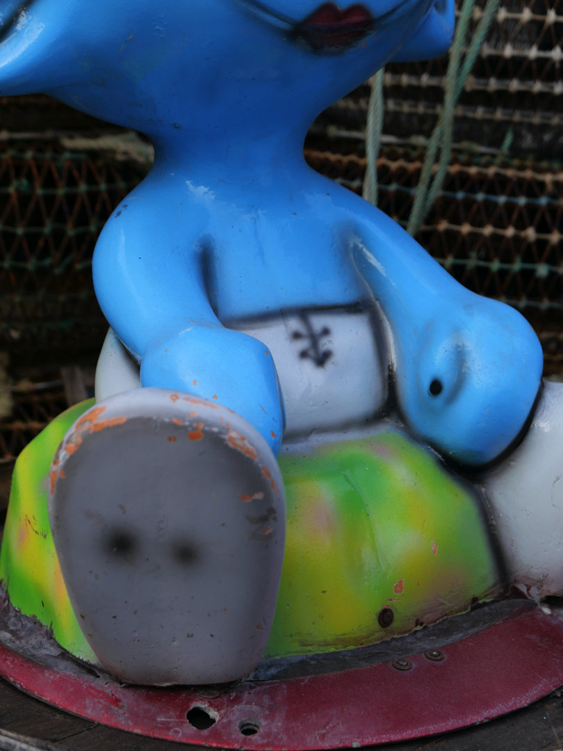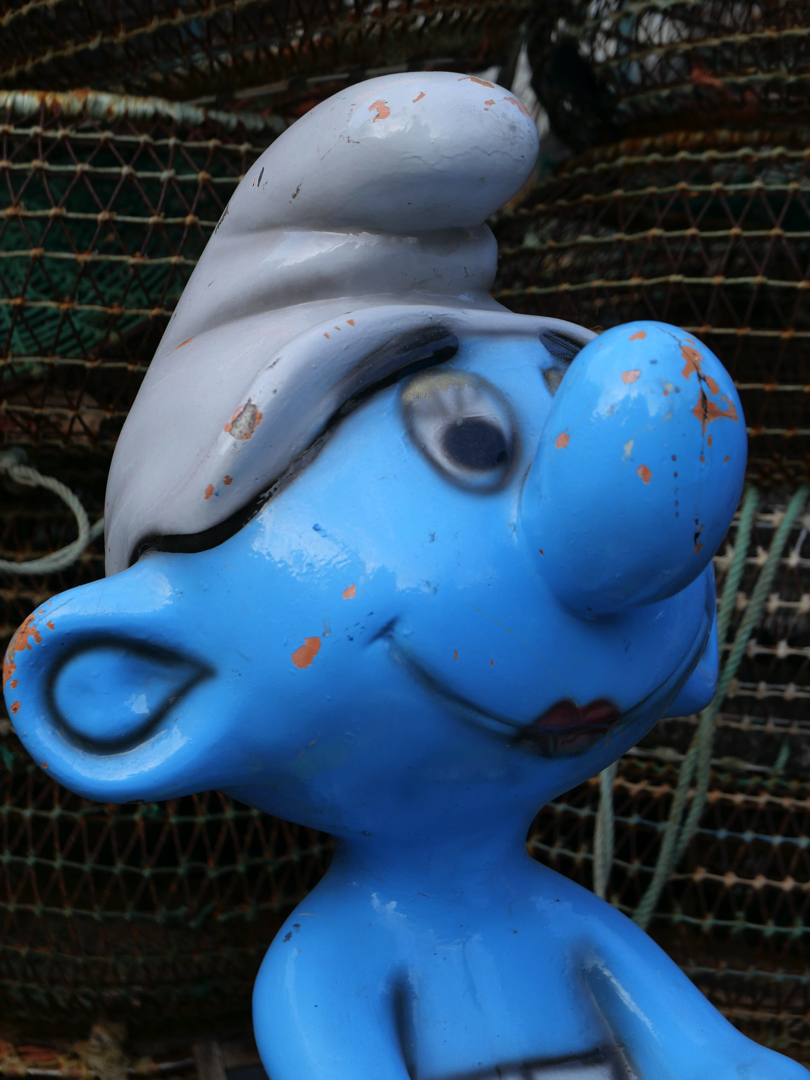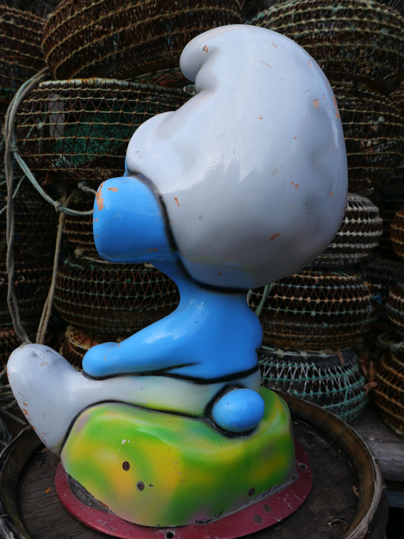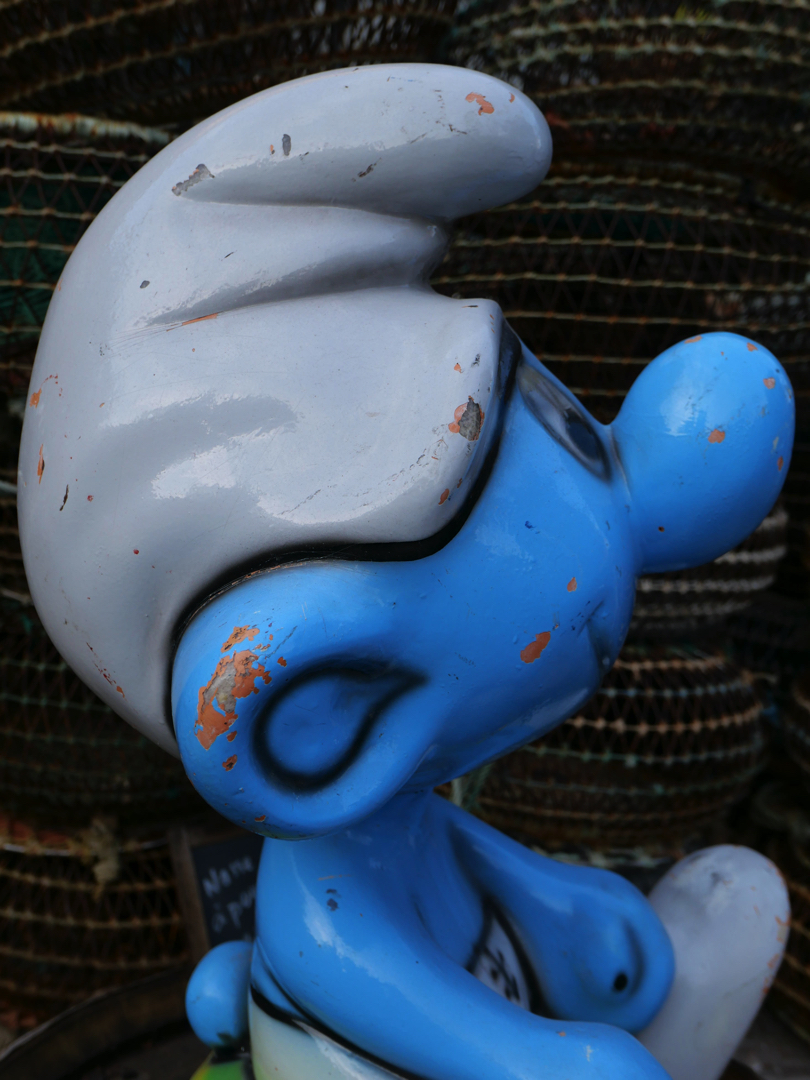 Sujet de manège schtroumpf de fête foraine en fibre de verre dans sont jus