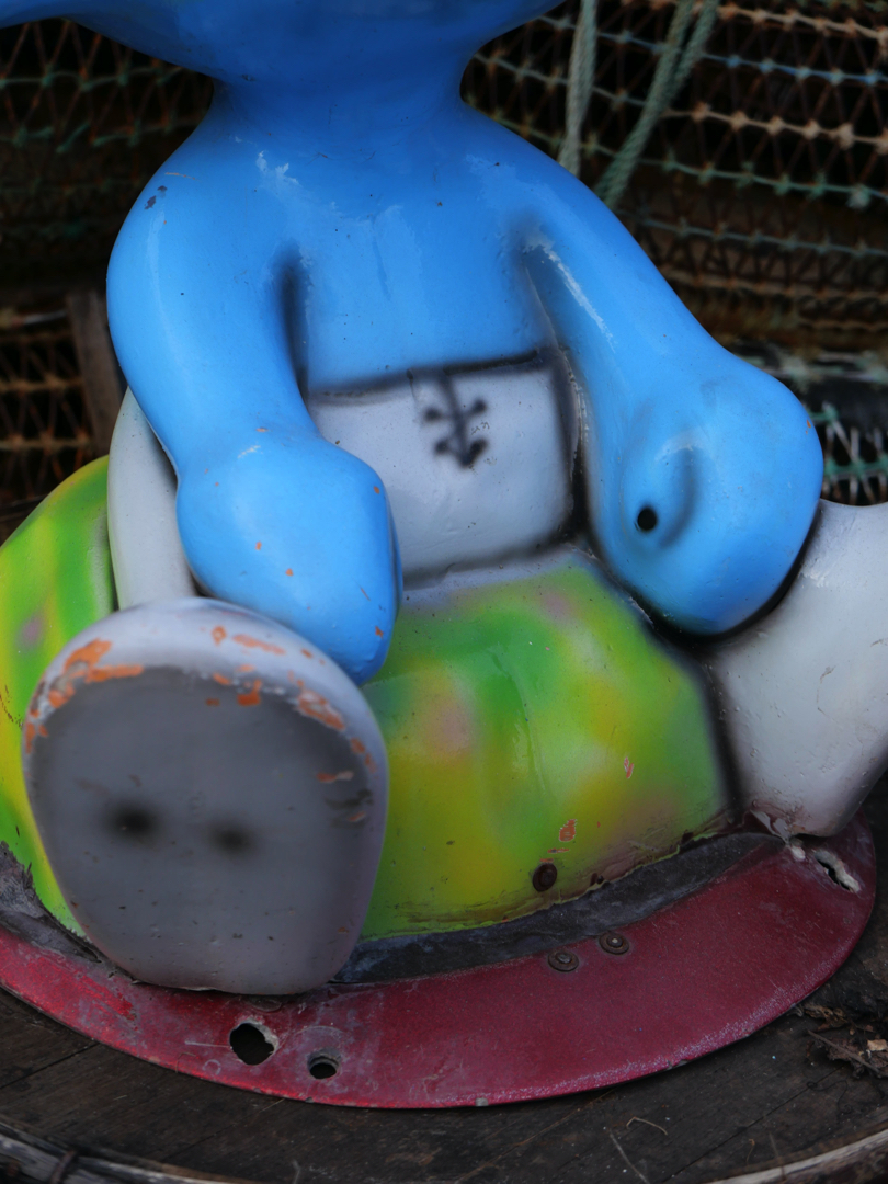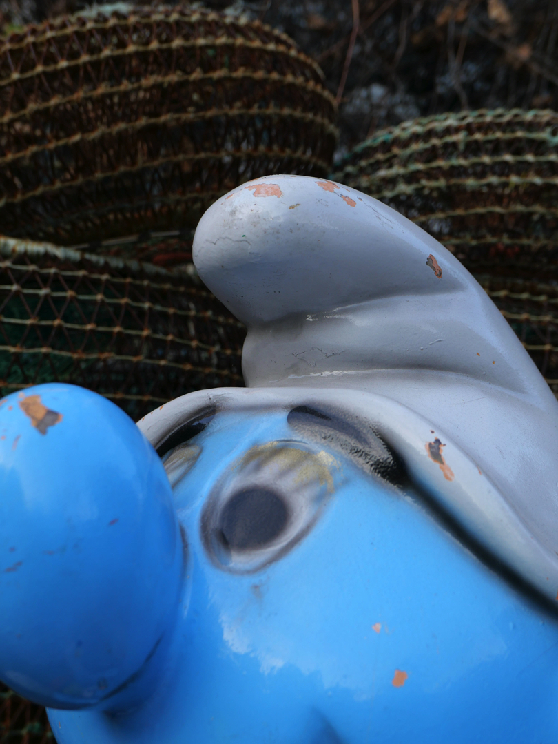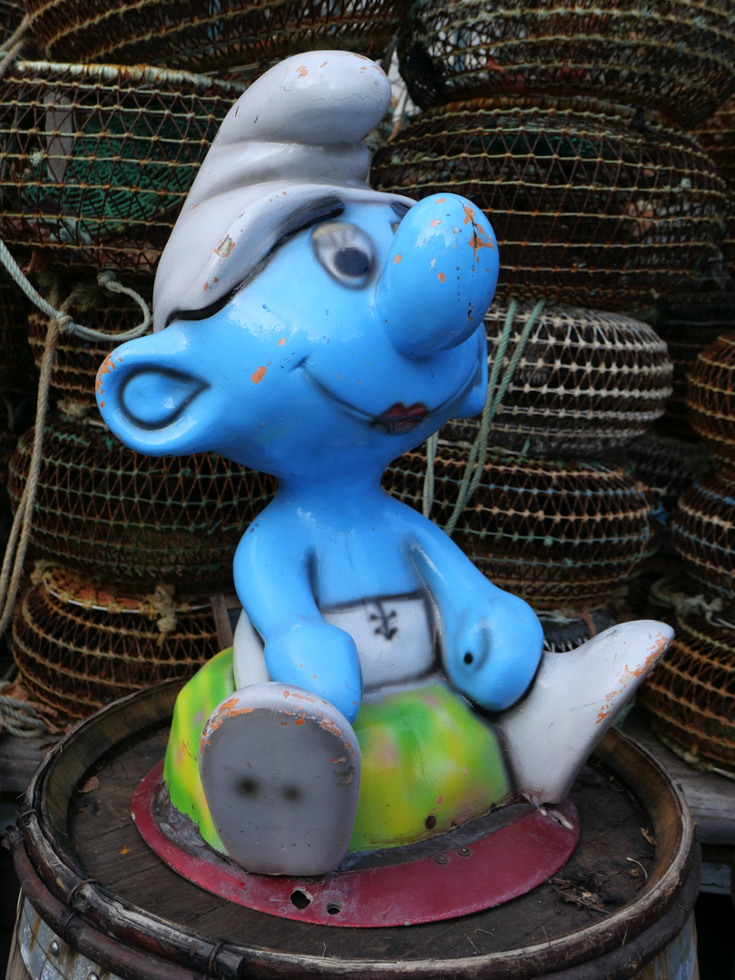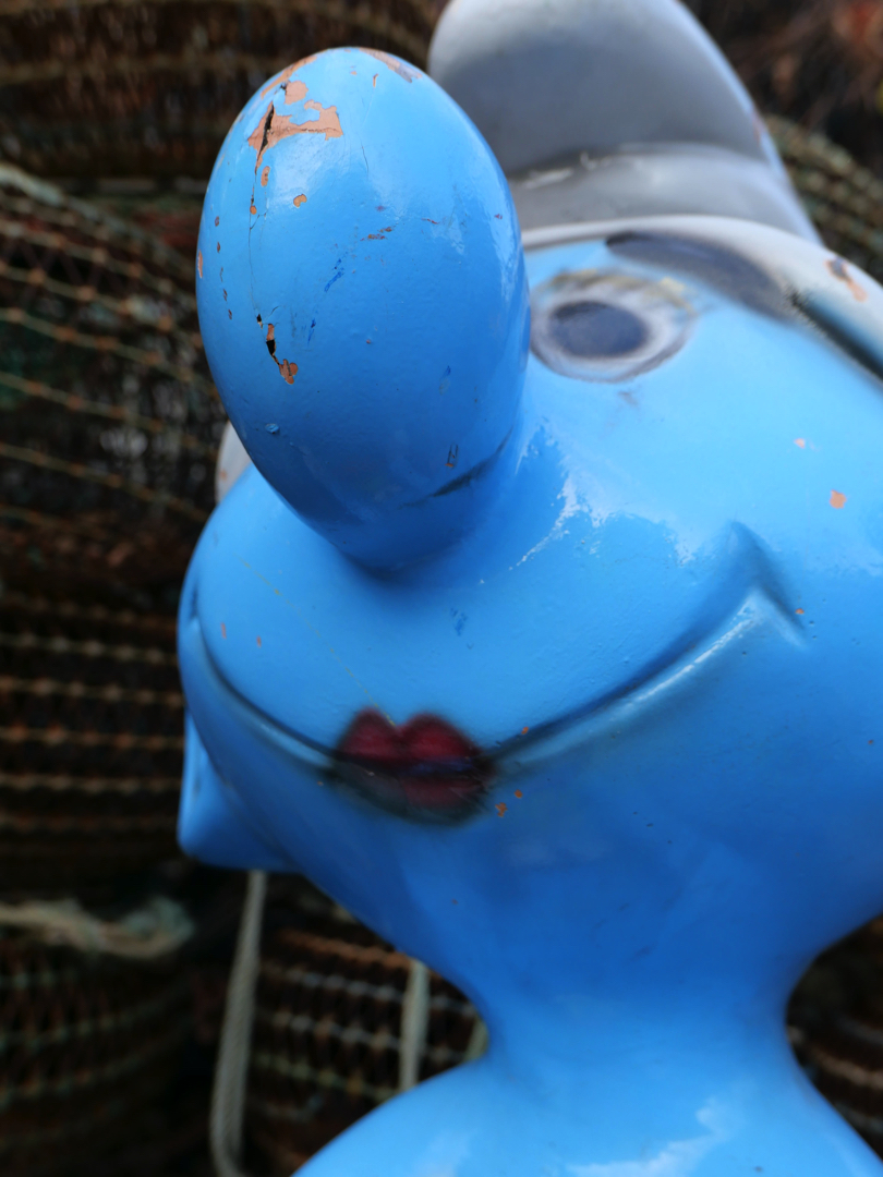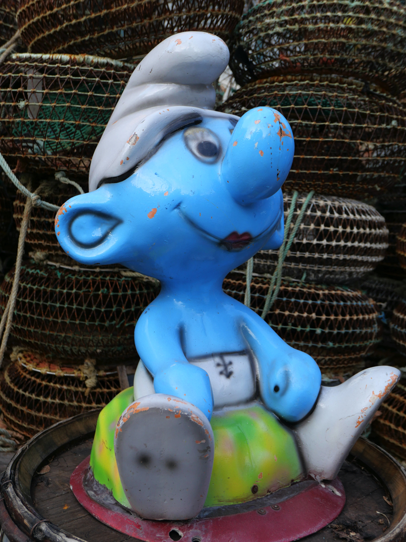 Sujet de manège schtroumpf de fête foraine en fibre de verre dans sont jus