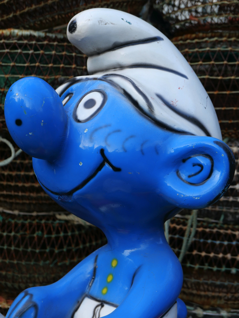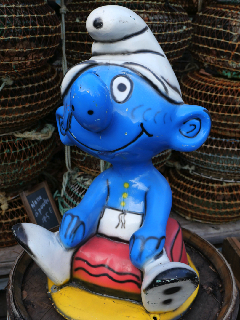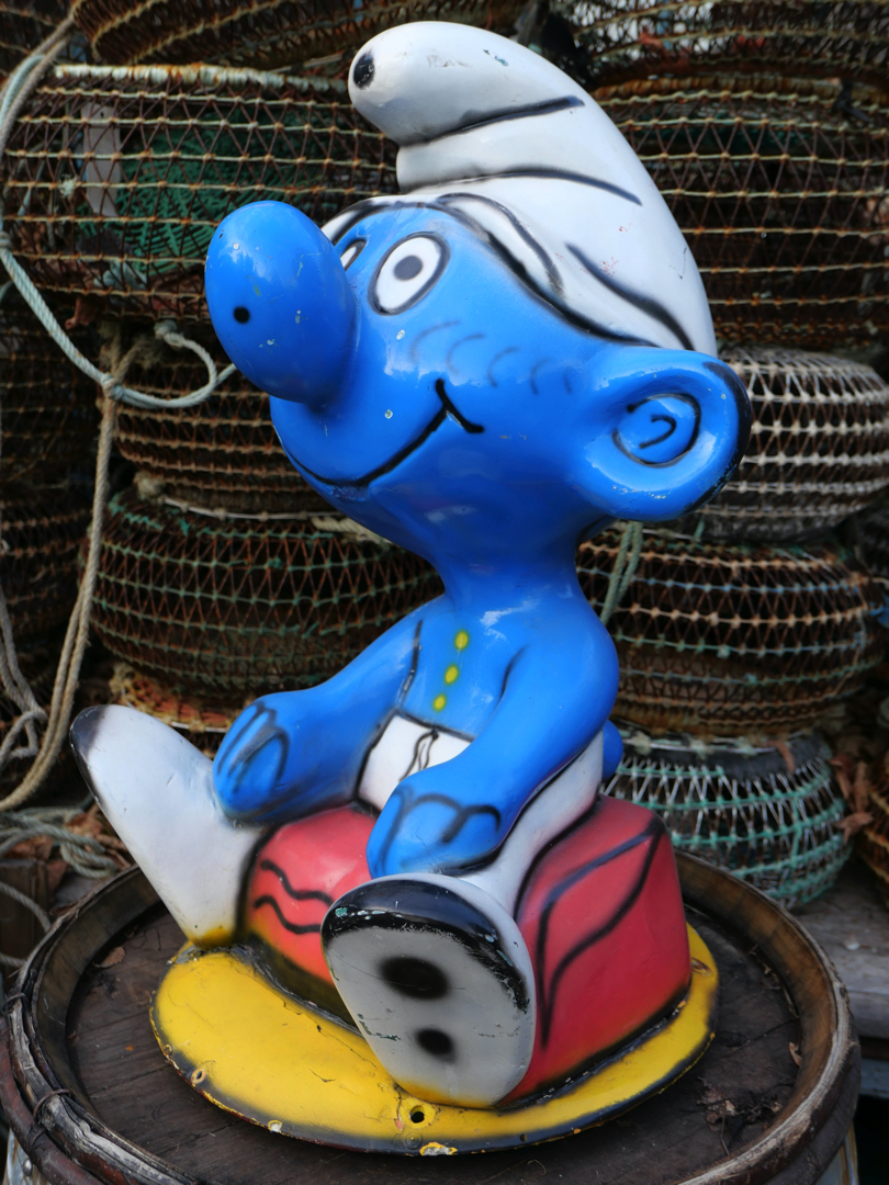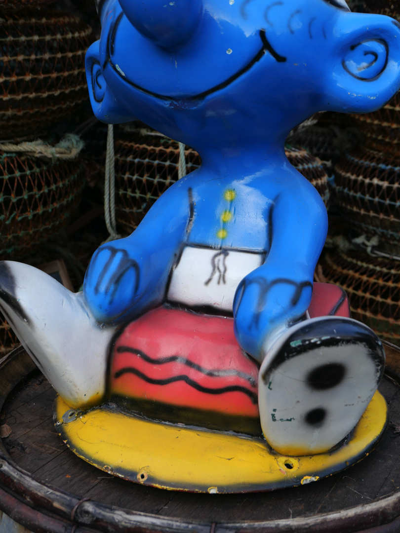 Sujet de manège schtroumpf de fête foraine en fibre de verre dans sont jus