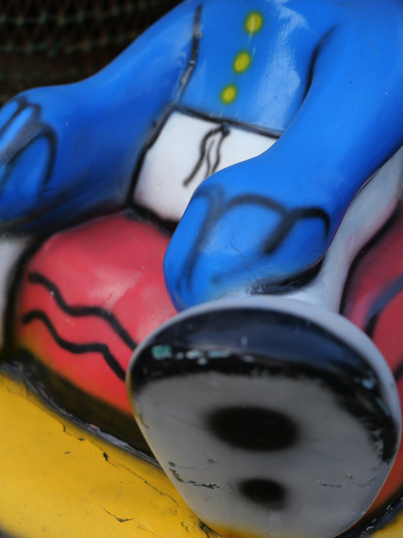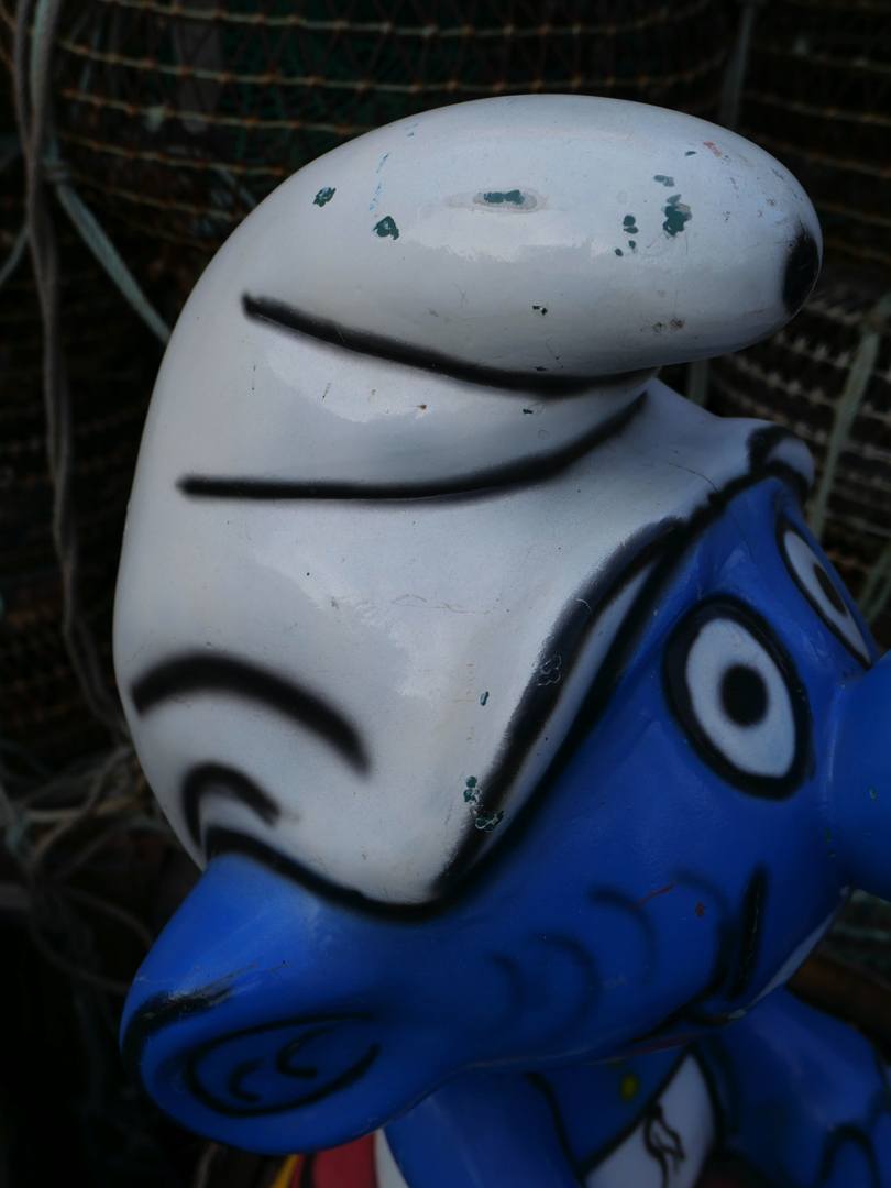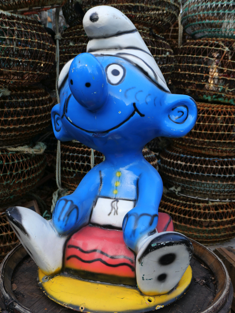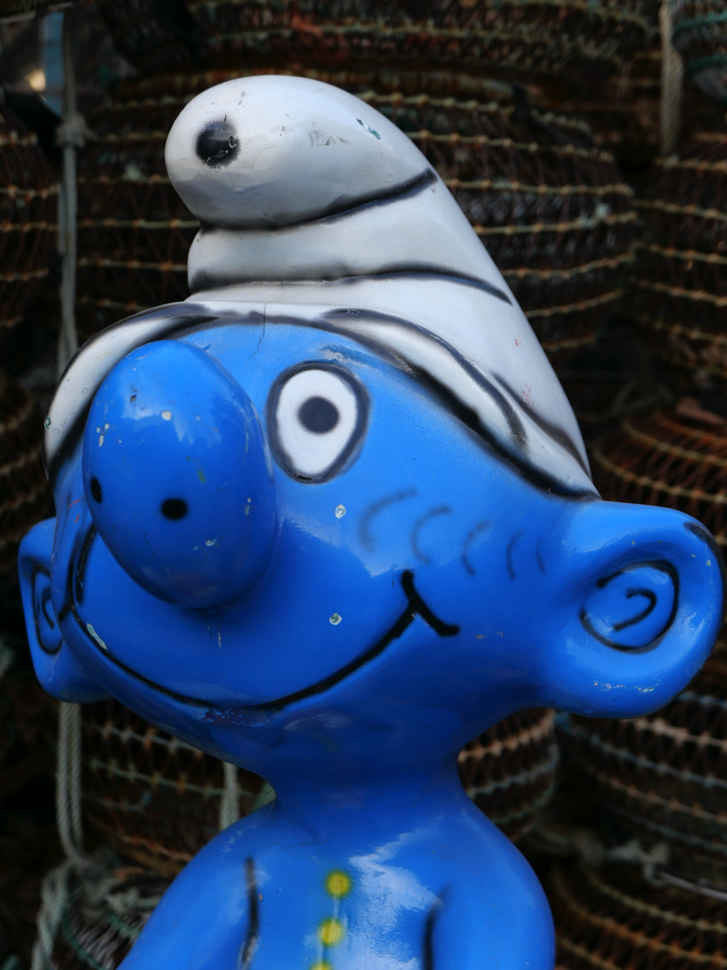 Sujet de manège schtroumpf de fête foraine en fibre de verre dans sont jus
