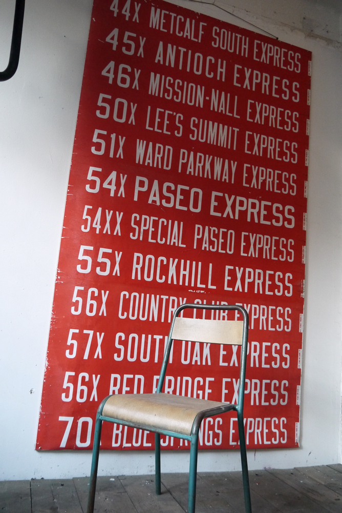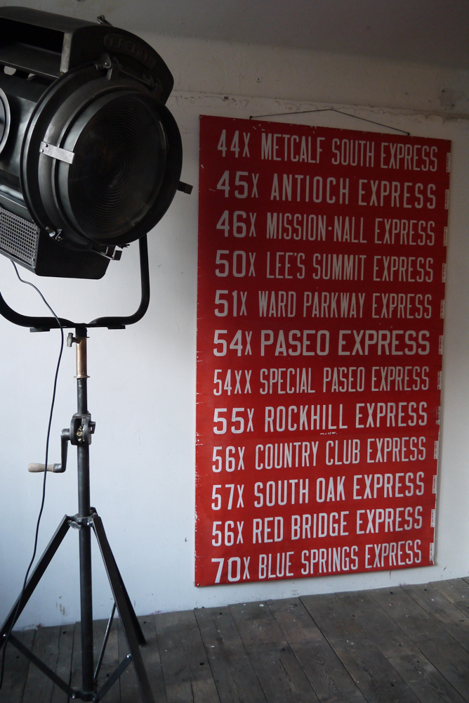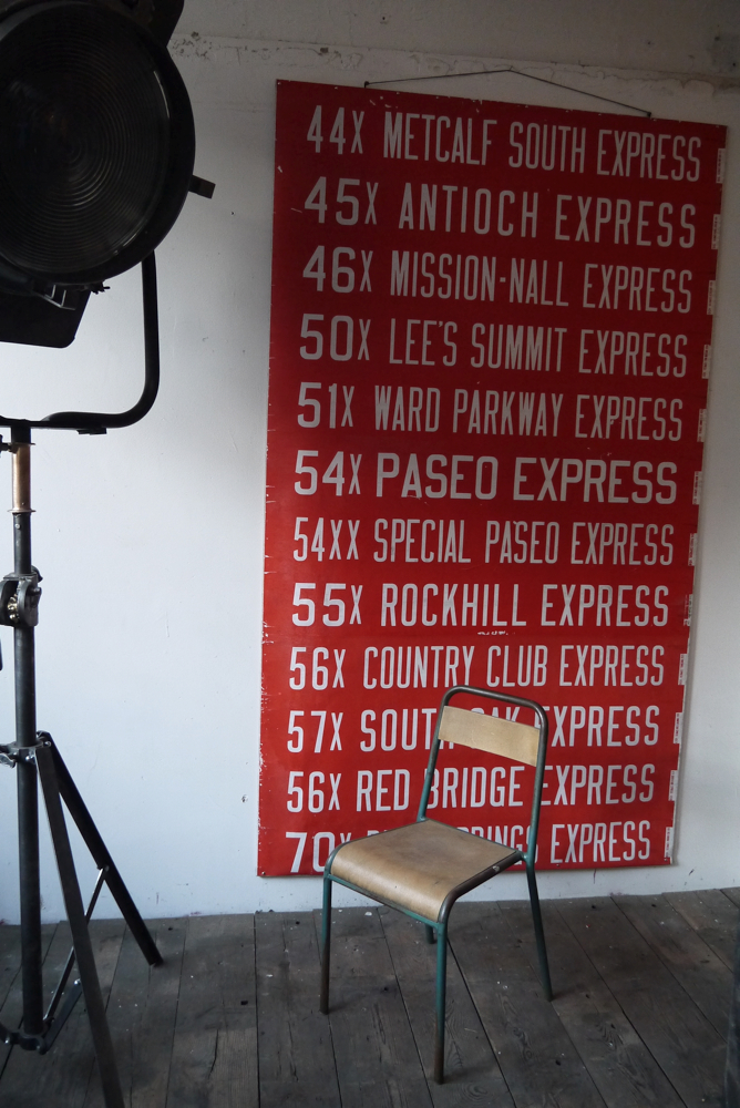 top deco ! tres grand kakemono rouge destination bus USA ligne floride annees 60/70