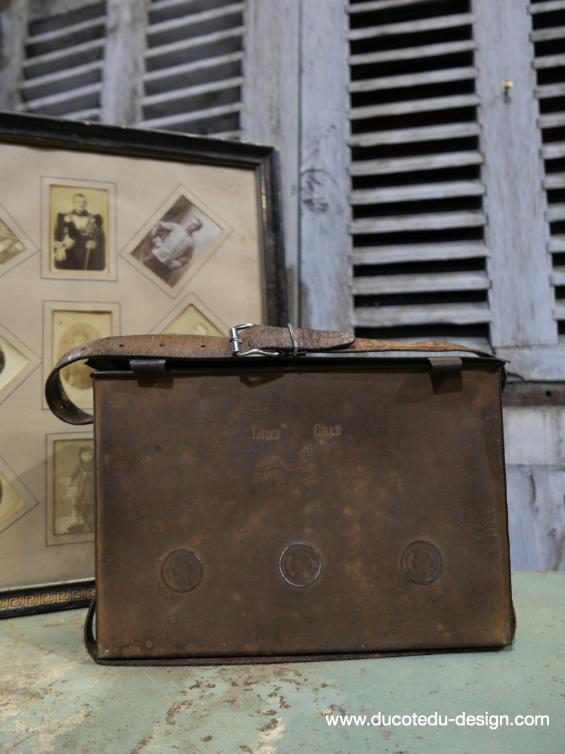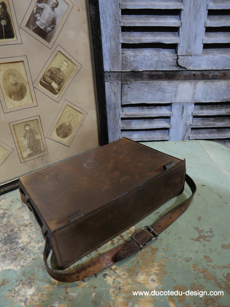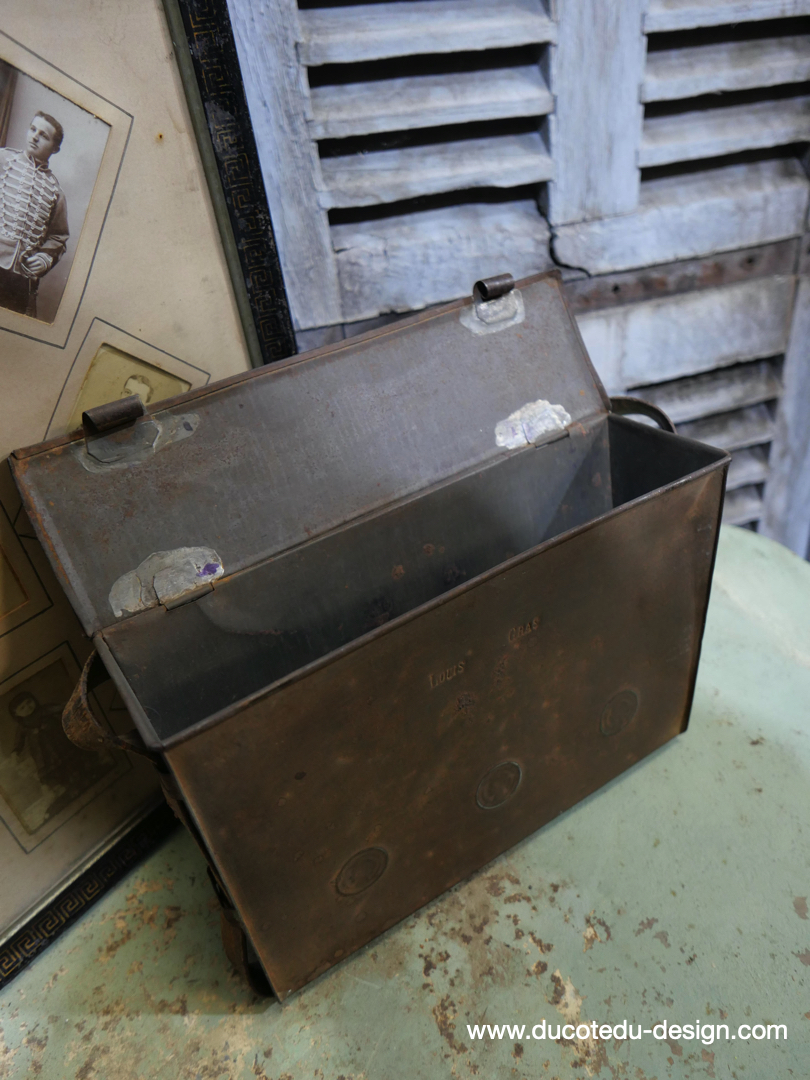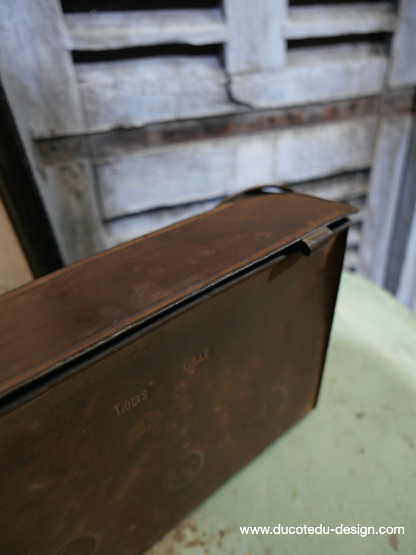 Ancienne valise porte document metal anse cuir Louis Gras dim 21 / 30,5 / 9 cm