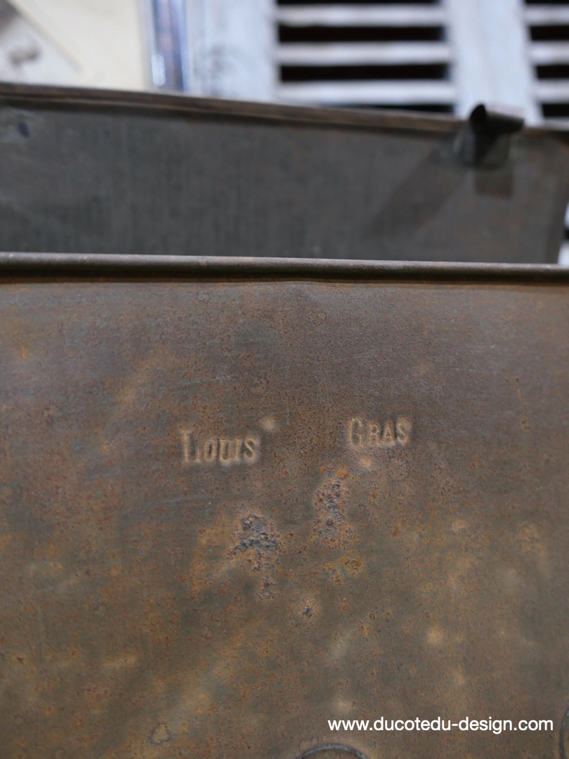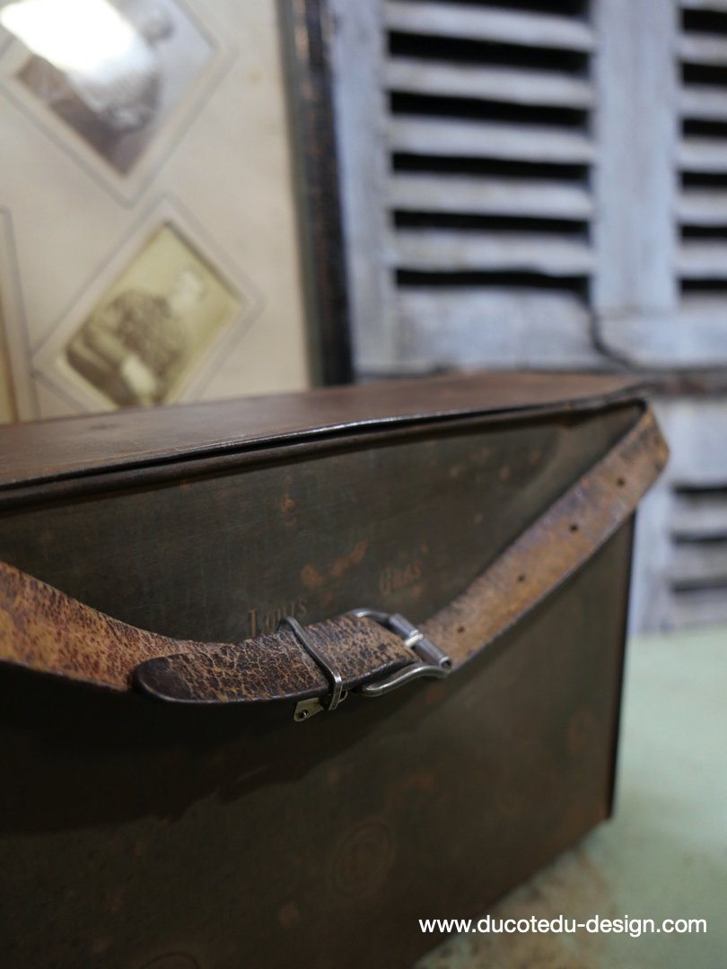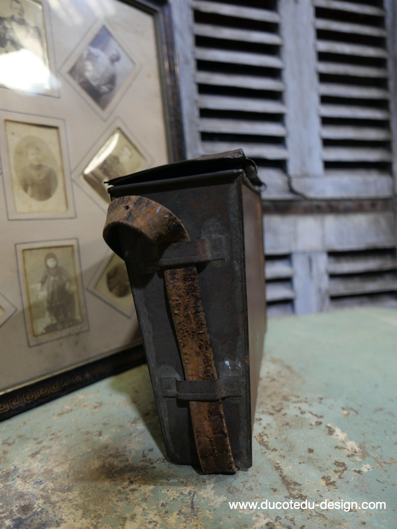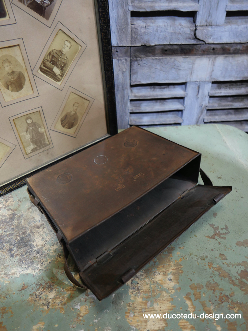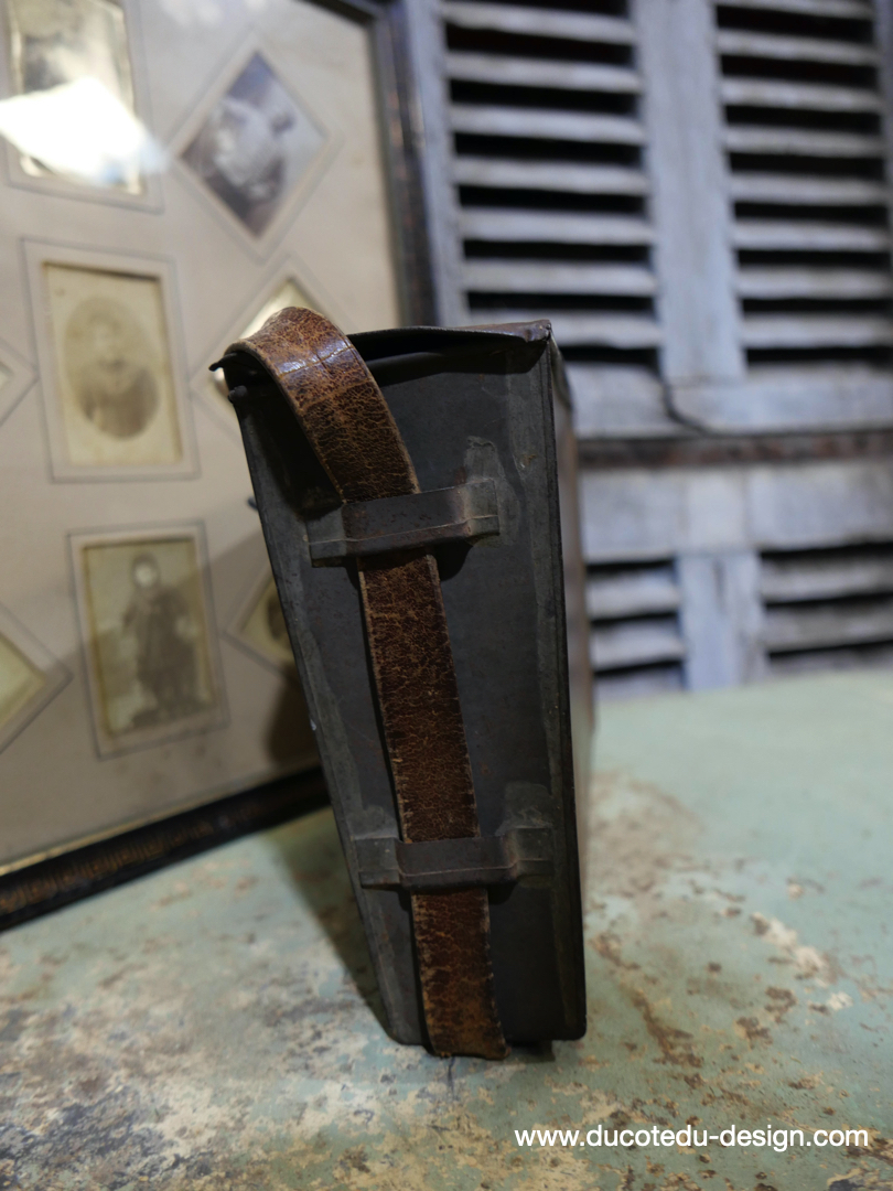 Ancienne valise porte document metal anse cuir Louis Gras dim 21 / 30,5 / 9 cm